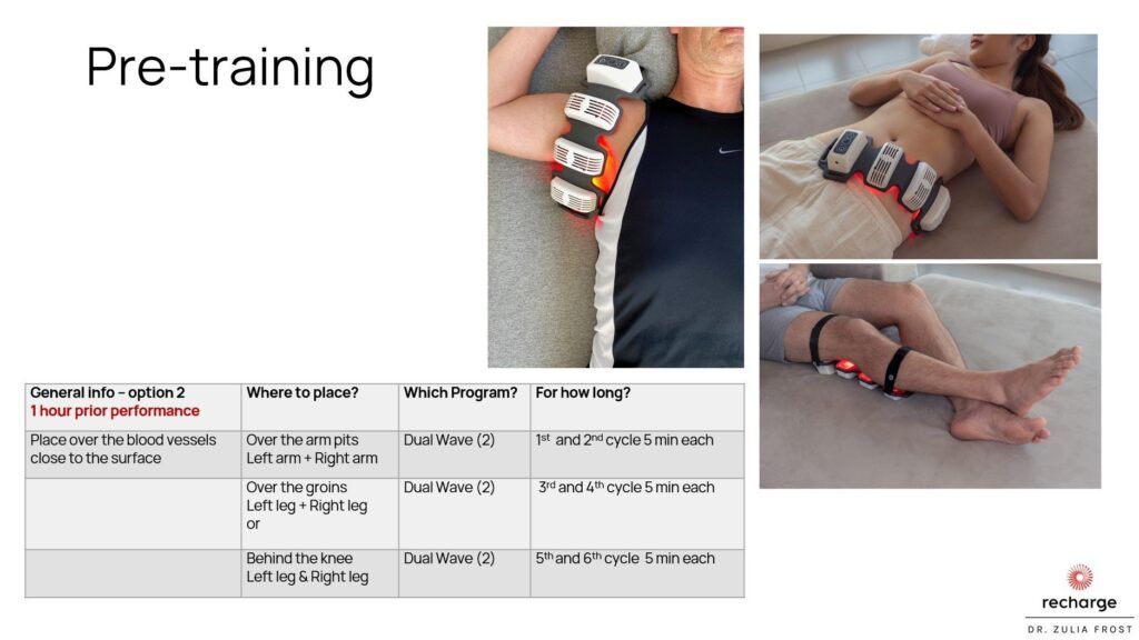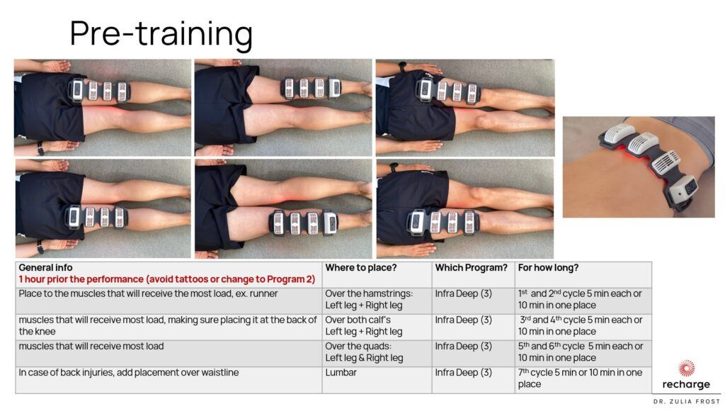 This is the most optimal pre-training red light therapy dose for the best results, as recommended by dr Zulia Frost. Click on images to expand them.